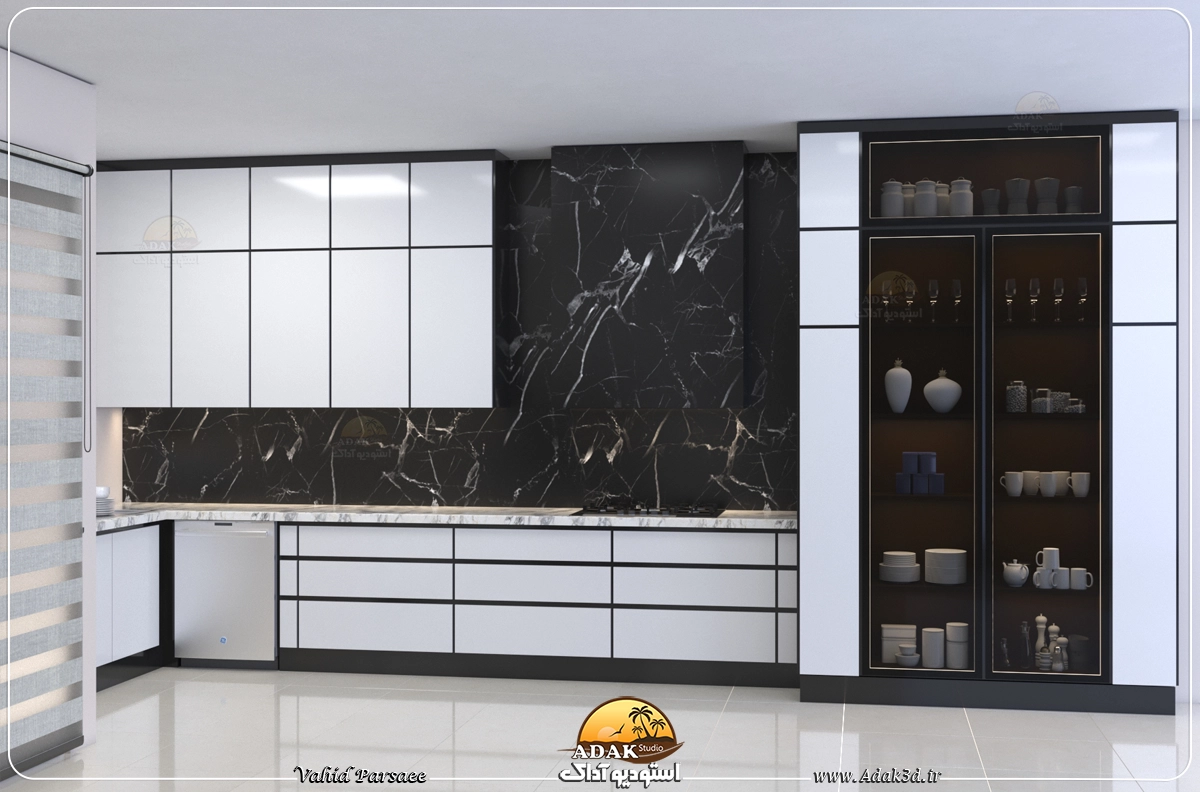 آشپزخانه مدرن سفیدمشکی