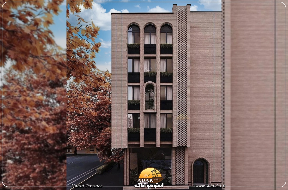طراحی سه‌بعدی برای ساختمان سنتی با آجر و پنجره‌های قوس‌دار و شکسته، ترکیبی از هنر و معماری است که زیبایی اصیل را به تصویر می‌کشد. استفاده از آجرهای قرمز با الگوهای گره‌چینی، علاوه بر زیبایی، استحکام و دوام بنا را نیز تضمین می‌کند.