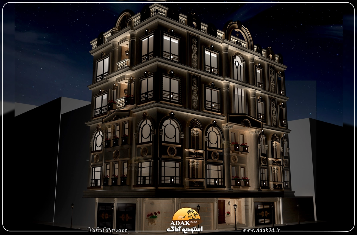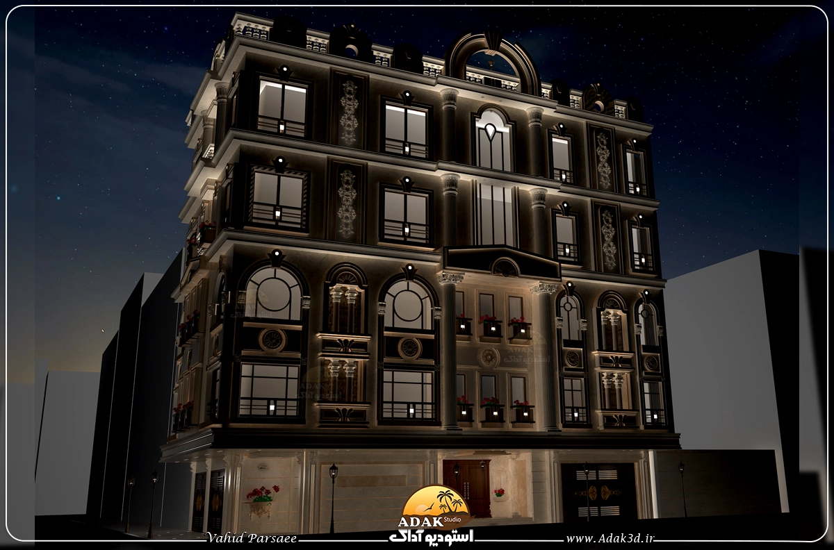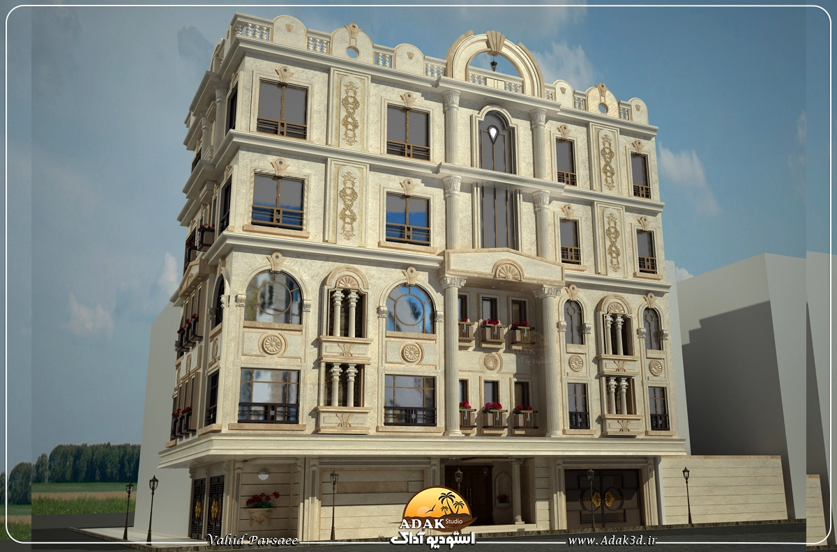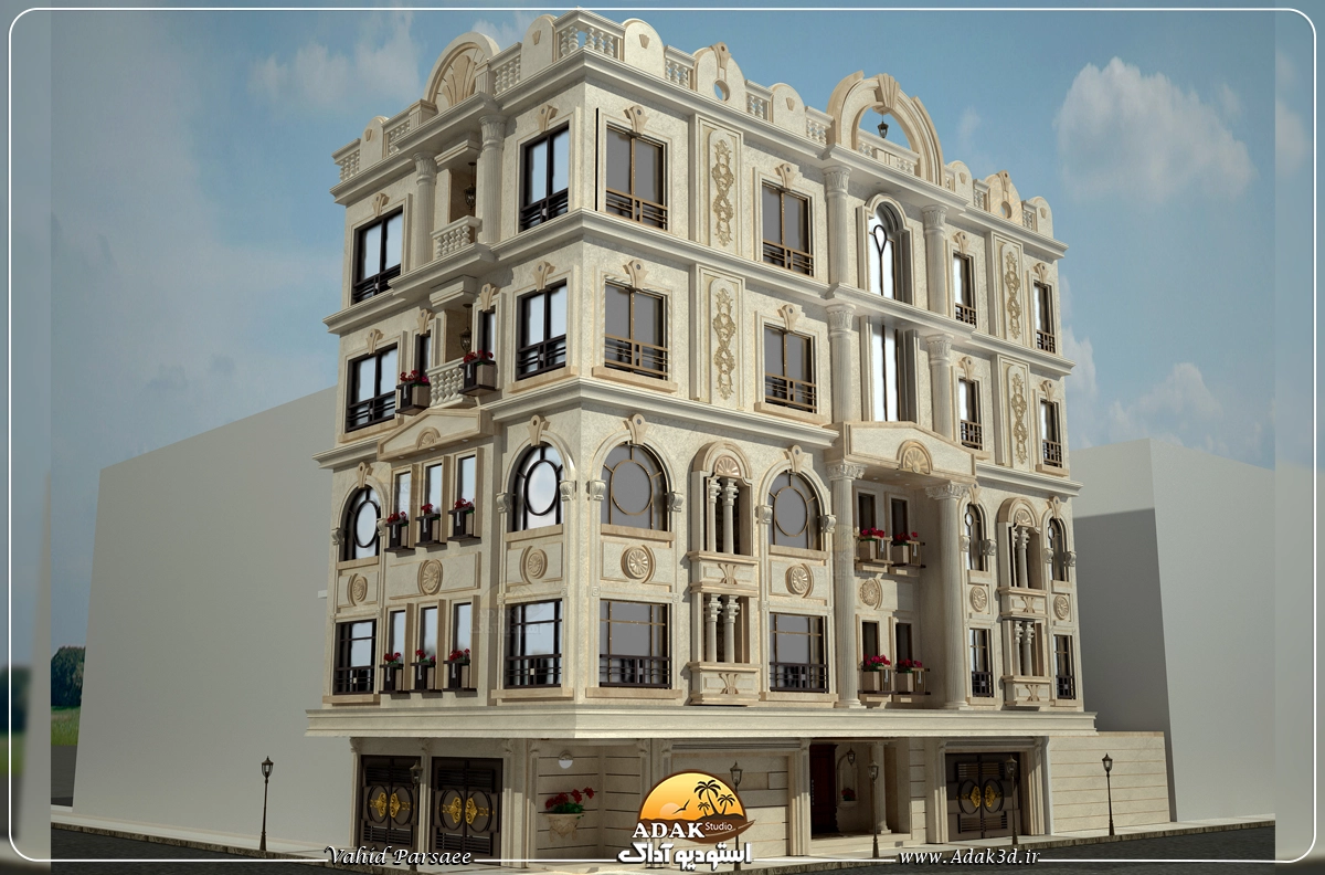 نمای کلاسیک نبش 4 طبقه