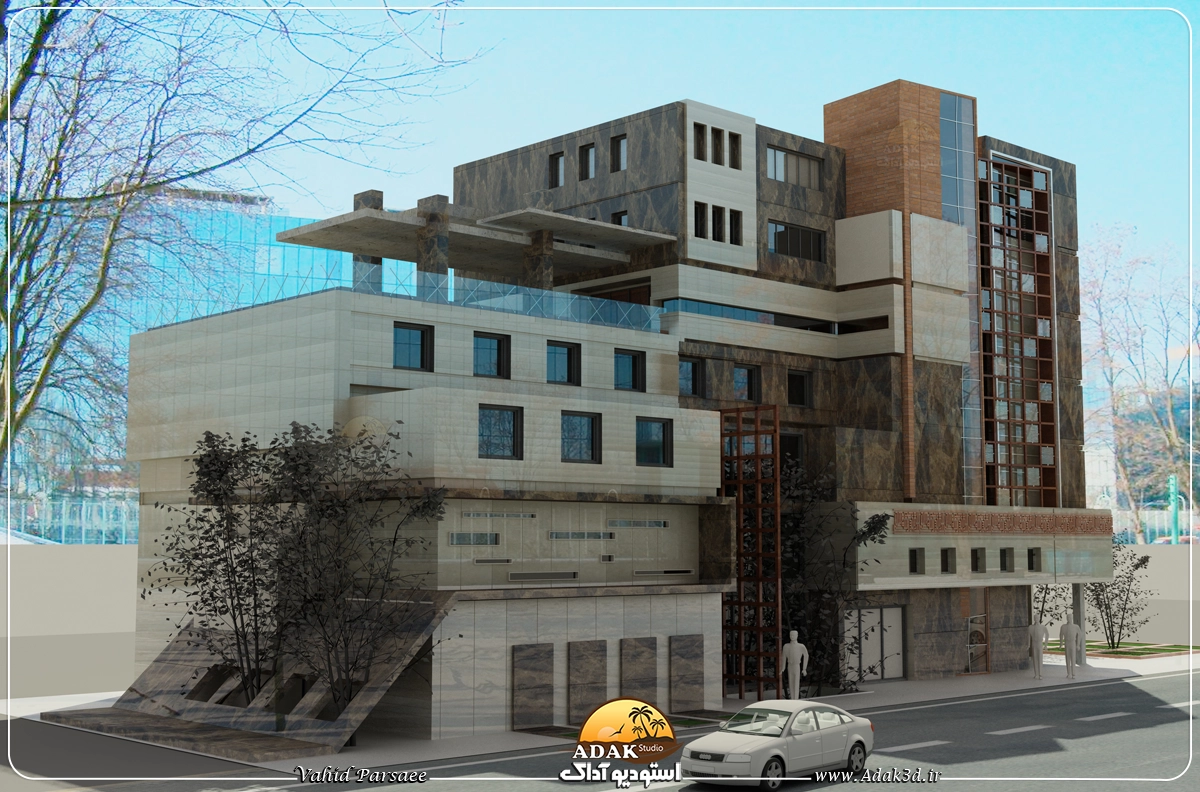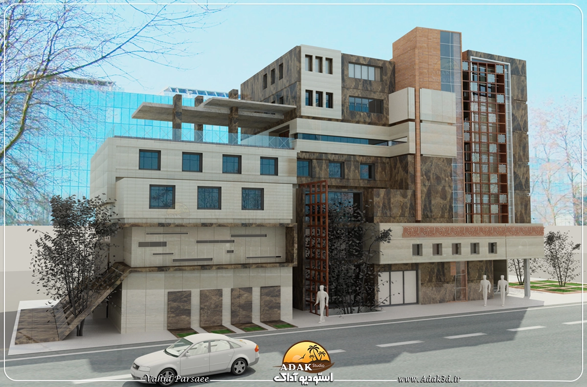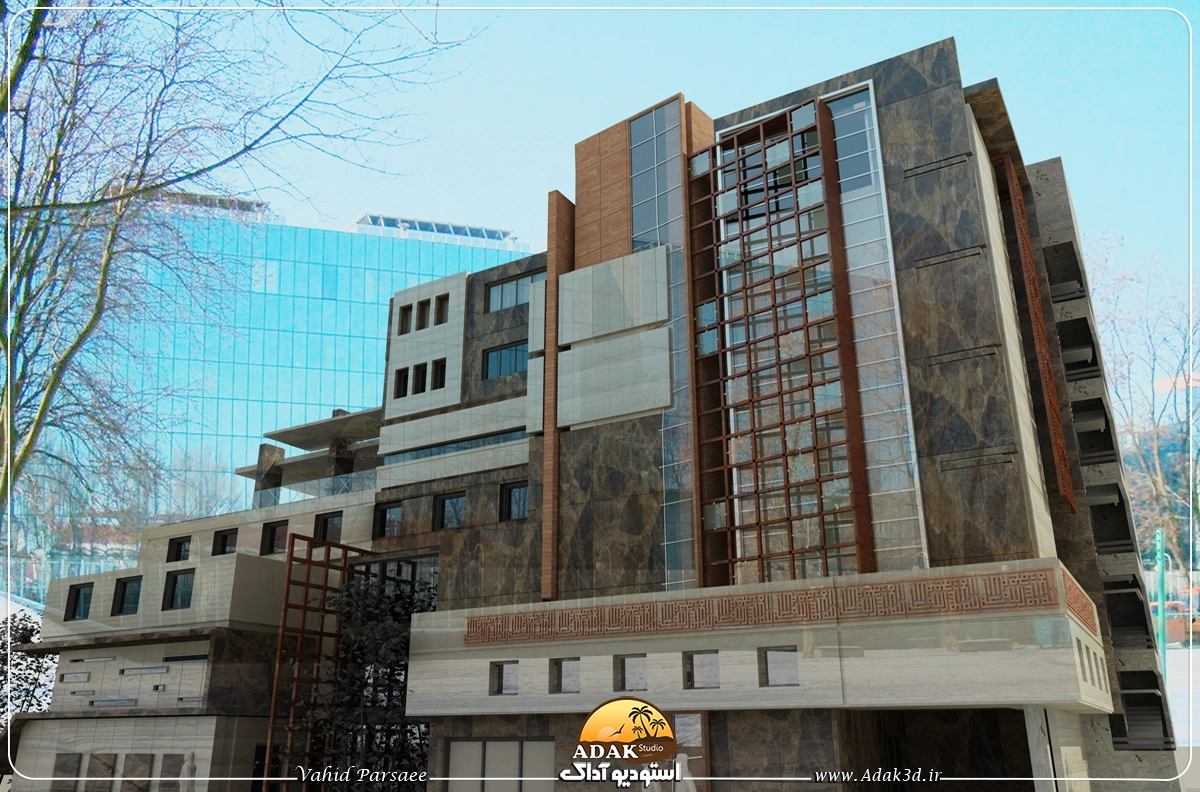 طراحی سه بعدی نمای مدرن اداری